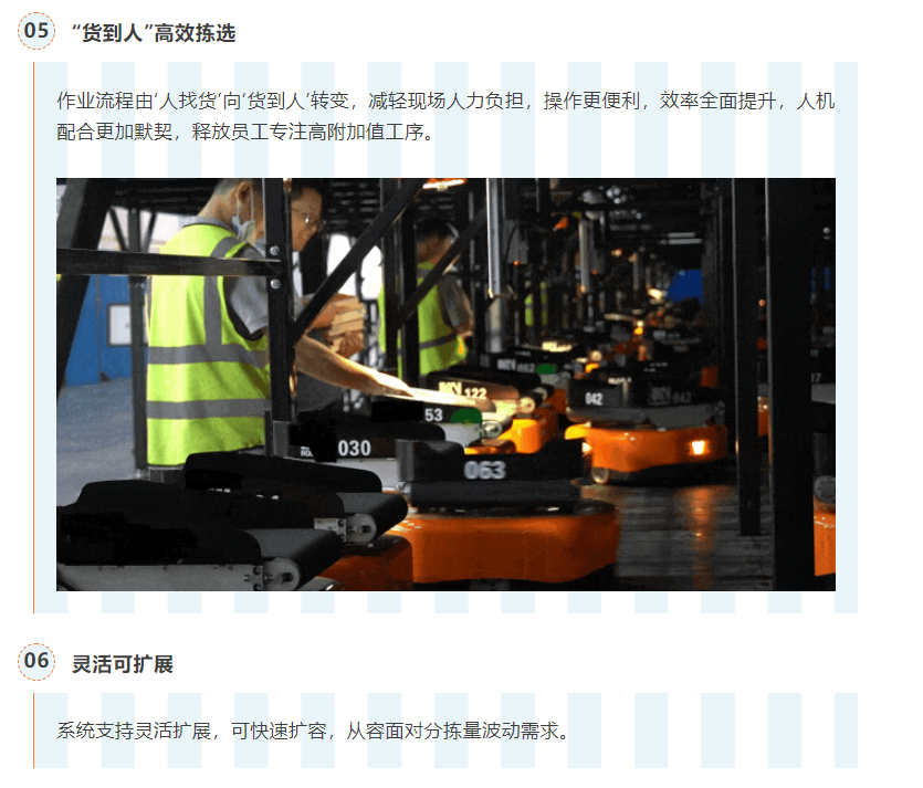 螞蟻機(jī)器人智能揀選解決方案將前端集合訂單通過WMS倉儲(chǔ)管理系統(tǒng)、PCS任務(wù)管理系統(tǒng)、RCS調(diào)度管理系統(tǒng)協(xié)同聯(lián)動(dòng),下發(fā)給螞蟻飛揀機(jī)器人和3D分揀機(jī),前端集合訂單先在庫區(qū)揀選,通過輸送線流至3D分揀區(qū)域進(jìn)行二次作業(yè),避免人工揀貨揀選失誤,相比于傳統(tǒng)方式人工穿梭在貨架區(qū)按單揀選,有效提高分揀正確率,減輕人工作業(yè)勞動(dòng)強(qiáng)度。