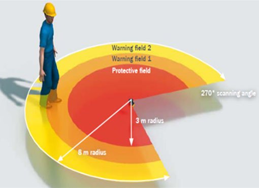 安全避障區(qū)域可以跟隨AGV行駛方向及動作進行切換。能在前進、轉(zhuǎn)彎、橫移等方向上根據(jù)車速動態(tài)調(diào)整避障范圍及區(qū)域。